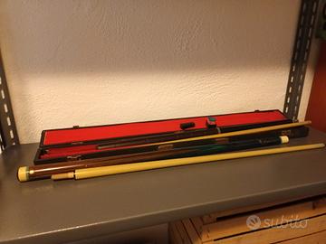 2 STECCHE DA BILIARDO IN LEGNO SVITABILI. UNA MARCA LONGONI 3 STELLE. COMPRENSIVE DI ASTUCCIO RIGIDO.