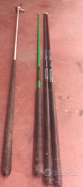 vendo stecche per biliardo come da foto. 2 LM Italia Carbon glass 1 Zenith Fiber glass 1 LM Italia penso in alluminio con finale a X.