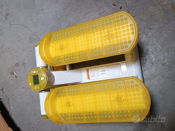 Step standard (i pedali non si muovono in diagonale ma solo su e giù) con piccolo schermo che indica il numero di step e i minuti. Scatola sporca perché era in solaio ma prodotto come nuovo, usato due mesetti scarsi
