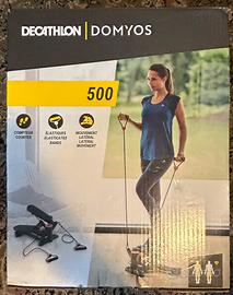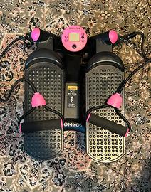 Attrezzo per allenamento gambe+braccia, dotato di schermo interattivo, utile per tenere traccia dei propri progressi. È dotato anche di maniglie per mantenersi in equilibri ed allenare le braccia.