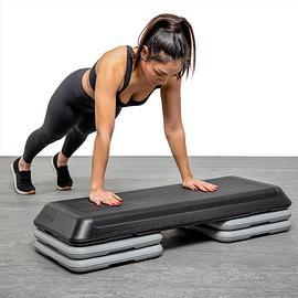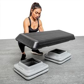 Step per fitness di alta qualità, contraddistinto da 2 coppie di gradini e dalla possibilità di regolazione in 3 diverse altezze 11, 16 e 21 cm. Così come altri modelli, è ottimamente realizzato e rifinito, si caratterizza per l’assenza di spigoli pericolosi e per una marcata rigatura antiscivolo, a tutto vantaggio del design e della sicurezza.