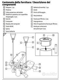 Lo stepper è destinato all’allenamento in ambiente domestico e serve a potenziare la resistenza e la forza. Lo stepper è destinato esclusivamente all’uso privato e all’allenamento in ambiente domestico. Lo stepper non è idoneo all’utilizzo in ambito medico, terapeutico o commerciale. Lo stepper non è un giocattolo.