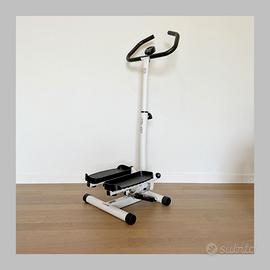 Stepper con Manubrio a movimento obliquo e pedane antiscivolo, dotato di una struttura solida e robusta, è molto stabile ed è in grado di supportare un peso utente di max 100 kg.