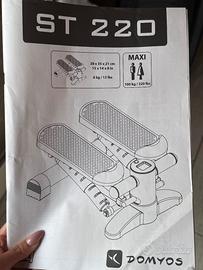 Stepper Domyos ST220. Utilizzato pochissime volte, ben conservato come si vede un foto. Capacità di peso massima 100 kg. Mostra calorie, scansione tempo, minuti e conteggio dei passi sul display. Comodo per chi vuole prendersi cura del proprio corpo rimanendo a casa.