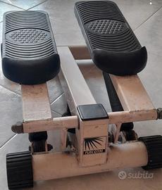 stepper fitnees marca FUN GYM utilizzo casa pedali antiscivolo usato, altezza pedali max 25cm e minimo 10cm. larghezza stepper cm 34 lunghezza 47cm. piccole macchie di usura sulla parte bianca come da foto
