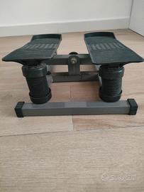 Stepper, grigio e nero, utile per allenarsi e fare fitness a casa.