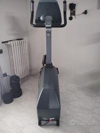 Display: finestra del profilo di allenamento LCD grafico retroilluminato blu da 7"; centro istruzioni alfanumerico a LED rossi da 14 caratteri; 3 display informativi numerici a 7 segmenti (3 serie) Feedback: tempo, piani saliti, calorie, velocità, livello, Watt, MET, frequenza cardiaca e profilo Programmi: manuale, intervallo (collina, casuale), obiettivo (tempo, distanza, calorie), multi FX (Watt costanti, casuale), frequenza cardiaca (frequenza cardiaca target, perdita di peso), test di adattamento, riscaldamento e defaticamento Caratteristiche speciali: cambio programma al volo, tasto di navigazione, tasti rapidi programma, avvio rapido one-touch, porta-lettura integrato e porta-borraccia Misurazione della frequenza cardiaca: sensori di pulsazioni a impugnatura e ricevitore telemetrico integrato.