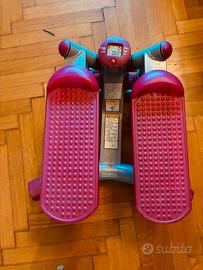 Twist stepper di DOMYOS. Mostra calorie, scansione, tempo, passi/min e conteggio dei passi sul display. Peso 6 kg. Non è stato usato molto, quindi i pedali hanno ancora resistenza.