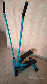 Stepper con lunghi manubri per allenamento libero o stile sci. I manubri sono rimovibili e con durezze variabili. Pezzo di alta qualità in ottime condizioni, utilizzato poco e riposto in casa. Niente ruggine o segni di umidità.