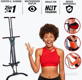 L’attrezzo multifunzione 2-IN-1: stepper e arrampicatore, tonifica e definisce gambe, glutei, addome e muscoli delle braccia e migliora resistenza e coordinazione.