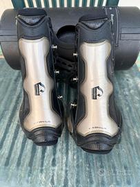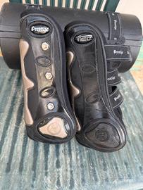 come da titolo vendo stinchiere e paraglomi Prestige con placche in titanio perfette in condizioni quasi nuove! taglia s ottime per doppio pony o cavallo! complete del loro cofanetto