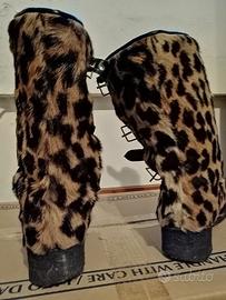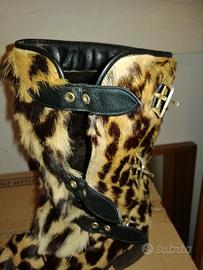 Stivali dopo sci vintage in vera pelliccia di ocelot ( picolo felino del Sud America ). Introvabile, articolo di lusso, ottime finiture . All'interno imbottitura in morbida pelle di agnello. Suola in gomma tipo antisdrucciolo. Impermeabili. Articolo vintage fine anni 70. Poche volte indossati . Taglia 36. L'articolo si trova a Roma zona Viale Libia. Eventuale trasporto a carico dell'acquirente .