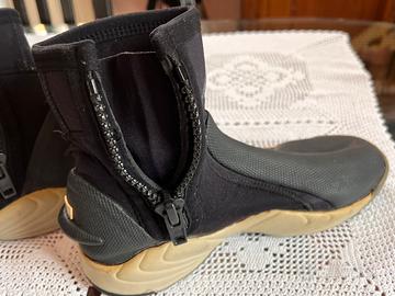 Vendo a prezzo forfettario per inutilizzo, stivaletti sub neri in neoprene della Mares, spessore 5mm con cerniera laterale . Taglia circa 42-44. Usati pochissimo e conservati con cura.
