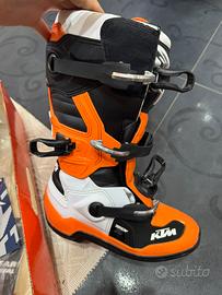 Vendo bellissimi stivali da Motocross/Enduro Alpinestars Tech 7S, versione speciale KTM Powerwear, taglia 39 EU (US 6). Gli stivali sono stati utilizzati solamente 3 volte per brevi uscite e si presentano in condizioni eccellenti, praticamente pari al nuovo, come visibile dalle foto. Non presentano segni di usura significativi, le suole sono integre e i ganci perfettamente funzionanti. Caratteristiche principali: • Modello: Alpinestars Tech 7S (specifico per ragazzi o piedi piccoli, garantisce massima protezione e comfort). • Edizione: Ufficiale KTM Powerwear (colorazione Orange/Black/White). • Condizioni: Usati 3 volte, puliti e igienizzati. • Dotazione originale: Inclusa scatola originale e set di adesivi KTM / Kini Red Bull ancora sigillati.