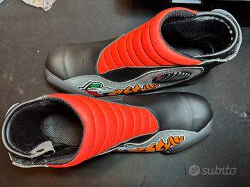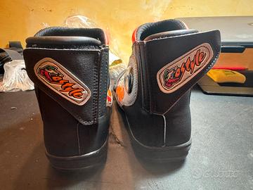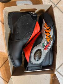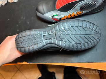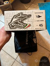 Modello: Minibike. Colore: Black-Orange (Nero-Arancio). Taglia: 45. Produzione: 100% Made in Italy. Caratteristiche Tecniche: Tomaia in microfibra, fodera in tessuto, suola antiscivolo, protezione rinforzata del malleolo e snodo di flessione anteriore.