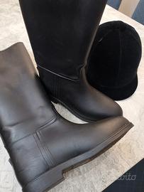 Stupendi Stivali Neri con fodera interna Rossa. Stivali per uso Equitazione taglia n.40. Casco di Velluto Nero per la sicurezza e anti urto. Usati pochissimo, come Nuovi.(spesa del nuovo 189€)