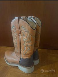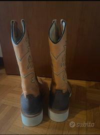 Stivali fatti a mano in pelle robusta per monta western taglia 37. Utilizzate una volta. Come visibile dalla condizione delle suole gli stivali sono pari al nuovo. Pagati nuovi 280€