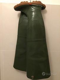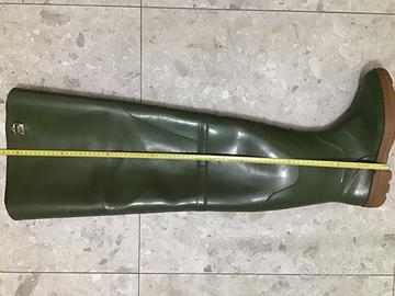 Adatti non solo alla pesca ma anche per campagna, lavaggio auto ecc. Impermeabili in gomma di alta qualità, si sostengono senza cinghie, suola antiscivolo tipo carroarmato. Usati pochissimo. Numero impresso 45-46, ma indossati con le calze vestono dal 43 al 45. Scegliendo Tuttosubito non optare per BRT.