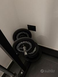 Struttura completa palestra con dischi tecnogym, panca manubri e struttura per trazioni e lat machine. Solo ritiro a casa