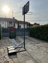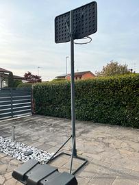 Struttura molto robusta e stabile grazie alla grande base zavorrabile con sabbia o acqua(110x45) per un ingombro a terra 110x 125. Altezza regolabile. Materiale visibilmente in ottimo stato. Prezzo NON TRATTABILE. Ritiro a domicilio a carico dell’acquirente(deve essere smontato-vedere viti/bulloni)