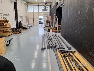 ampia disponibilità di elementi e accessori per la realizzazione a piacimento di gabbie funzionali cross fit: parallele, bersagli, barre pull up, monkey, fune arrampicata, traverso fly arm, landmine, leverarms, cable station, ganci di sicurezza, supporto bilanciere...