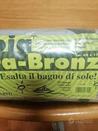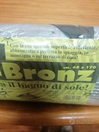 Vendo stuoia abbronzante con superficie riflettente x favorire l' abbronzatura stessa. Utilizzabile ovunque, comoda e leggerissima da trasportare, nuova, ancora sigillata. Misura cm 68 x 170 ed io la utilizzo anche per riparare l' abitacolo dell' auto, anche se non è il suo uso specifico.