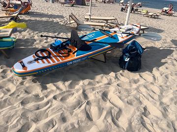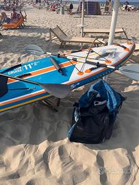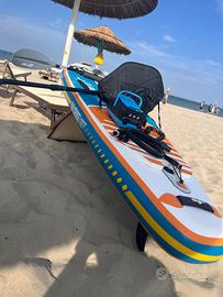 la tavola ha 3 anni ed è in ottimo stato. E' completa di seggiolino e poggia piedi per trasformazione a kayak, ha una seconda pinna di ricambio nuova, pompa originale e un gonfiatone elettrico a batteria, con presa per accendisigari e anche a 220 , per gonfiare in spiaggia o al lago ecc senza fatica fino a 4 volte senza ricaricarlo, pagaja per kayak e pagaja per sup, leash e borsa per trasporto con ruote maggiorata molto capiente . il tutto è visibile nel prossimo we 26 e 27 luglio a Marina Romea . se mi mandate una mail vi mando il video del gonfiatore . fabio64.conti@gmail.com