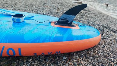 Sup Gonfiabile Aquatone Wave 10. Lunghezza 10'0'' / 305 cm • Larghezza 32'' / 81 cm • Spessore 6'' / 15 cm • Volume 290, pagaia regolabile, leash spiralato, pompa doppia azione, zaino, condizioni stupende , Peso 8,6