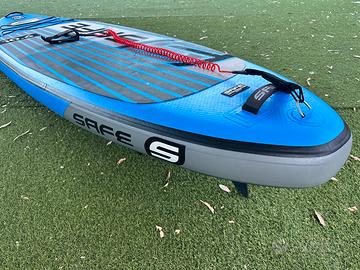 Accessori inclusi: pompa manuale a doppia azione, zaino, pagaia in alluminio smontabile e regolabile, leash, kit di riparazione.