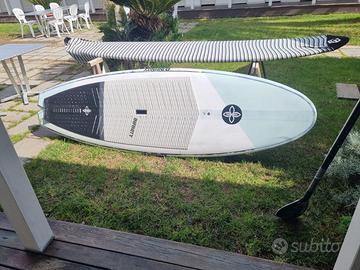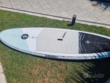 Splendida tavola in carbonio, veloce, performante e stabile, ottima per le persone un po' più pesanti oppure con chi voglia passare da un orrendo gonfiabile a una tavola di livello per gestire bene le onde pur senza senza disdegnare passeggiate allenanti. Infinity è un marchio che produce quasi su ordinazione e quello che fa lo fa molto bene. Le tavole Infinity costruite in carbonio sono leggerissime ed estremamente solide con un pad fantastico che non si riscontra in altri marchi. Questa tavola, sempre sciacquata dopo l'uso e tenuta all'ombra è stata utilizzata per meno di un anno perchè la tengo di scorta utilizzando sempre un Infinity Blurr V2. Preferirei non spedire e ho anche la sacca. La tavola è visibile a Marina di Carrara.