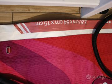 Vendo Sup Mistral con carrello usato come nuovo.... misure 320x 85x15 cm completo di sacca , pinna, pompa ,doppia pagaia e mono e cavigliera.