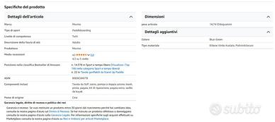 SUP PERFETTO IN TUTTO USATO L'ANNO SCORSO USATO 5 VOLTE PERFETTO E COMPLETO DI TUTTO INFO TECNICHE NELLE FOTO