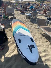 Sup marca hurley completo di pompa kit riparazione laccio per piede pinna e zaino , vendo per non utilizzo e sta usata 6 giornate aquistata il 18 agosto 2024 alla decatlon dimensioni 10’ 6” x 30” x 6”