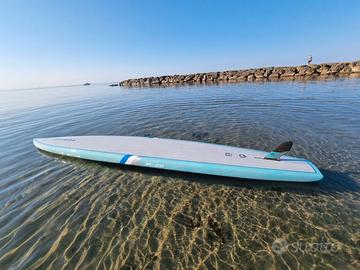 Vendo sup race RIVIERA 14 piedi per 25. Perfetto 288 litri. Velocissimo e leggero fatto in carbonio, bamboo, kevlar e fibra di vetro, pesa solo 11,5 kg. Qualche normale segno di utilizzo come da foto. Compresa nel prezzo la sacca la sacca. Disponibile al trasporto per la consegna. Visibile a Roma o Ladispoli