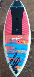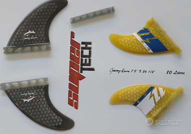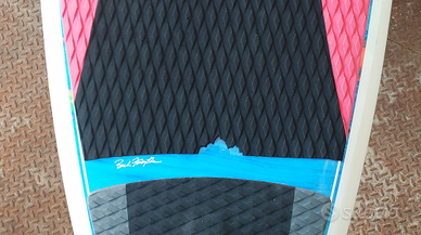 sacca a misura perfetta e ben tenuta, para rails RSPro, pad originale Jimmy Lewis, set pinne quad(vedi foto). Piccolo ed assolutamente ininfluente strappo nel pad(vedi foto).