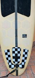 Tavola solida, sana e pronta all'acqua. Presenta il classico ingiallimento della resina epossidica dovuto al sole (puramente estetico, non intacca la struttura). Il pad principale è da sostituire, ma la tavola è perfettamente utilizzabile grazie agli inserti Hexa già applicati.