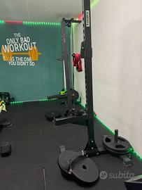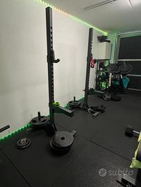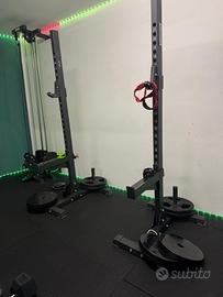Vendo supporti WLX 3000 Toorx Supporti professionali squat stand carico massimo 300 Kg. La struttura a sezione quadra 60x60 mm dello spessore di 3.2 mm e rettangolare 50x70 mm spessore 3.2 mm Altezza J-cup/Safty Spotter arm regolabile 450-1890 mm su 25 livelli interasse 60 mm Spessore J-cup Safty spotter arm extra strong 8 mm con protezione UHMW (Ultra High Molecular Weight). Misure imballo: 191x35x18 cm Peso: 64 Kg Ritiro su roma ( zona eur)
