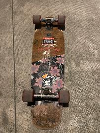 Surf skateboard della globe in legno di cocco con trak della tensor molto divertenti per la loro gran mobilità ma non eccessiva. Ruote perfette, cuscinetti abbastanza buoni. Dotato di aprivottiglie globe, molto divertente. Presenta segni di utilizzo ma strutturalmente ancora molto rigido e perfetto .