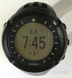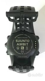 Vendo SUUNTO AMBIT BLACK, orologio GPS multisport con funzione di monitoraggio della frequenza cardiaca completo di scatola, cavo USB di ricarica, guida rapida e ricevuta di comprovato acquisto. Tenuto in ottime condizioni, perfettamente funzionante e utilizzato prettamente per attività sportive (il limitato utilizzo è verificabile attraverso applicazione). Schermate personalizzabili e ottimo per ogni tipo di attività outdoor. Utilizzabile con applicazione Movescount di Suunto e Strava Garmin Polar ed è aggiornabile con le migliaia di Apps da scaricare. Da sostituire il cinturino. CARATTERISTICHE PRINCIPALI: Misure 50 x 50 x 18.1 mm / 1.97 x 1.97 x 0.71"; Peso 78 g / 2.75 oz; Materiale della ghiera: Alluminio; Materiale del cristallo: Cristallo minerale; Materiale della cassa: Poliammide; Materiale del cinturino: Elastomero; Funzioni per l'outdoor e l'allenamento; Autonomia batteria in modalità ora 30 giorni; Tipo batteria litio-ioni ricaricabile; Sveglia; GPS integrato con possibilità di memorizzare coordinate e posizioni; Cronometro e conto alla rovescia; Bussola, barometro e altimetro; Possibilità di cardio frequenzimetro; Blocco pulsanti; Personalizzabile con oltre 1000 Sport Apps gratuite. Disponibile per ulteriori informazioni. Richiesta 50,00 euro.