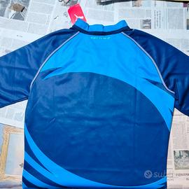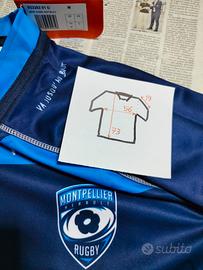 T-shirt da rugby marca Puma del club francese di Top 14 "Montpellier Hérault Rugby - MHR" nuova con cartellino e in confezione originale, taglia M Maglietta dai classici colori blu, loghi dello sponsor tecnico ricamati; main sponsor "Altrad" sul fronte incollato; logo e frasi caratteristiche della squadra stampate sul tessuto, sul fronte, sulle spalle e sul retro del colletto Materiale molto resistente in poliestere adatto anche per la pratica agonistica e l'allenamento Misure approssimative in centimetri (vedi ultima foto): - 73 cm dal collo al fondo - 56 cm da ascella ad ascella - 19 cm lunghezza delle maniche Maglietta che può essere indossata sia dentro che fuori dal campo, oppure da tenere come cimelio da collezione! Team rugby sponsorizzato, con stupenda grafica e colorazione T-shirt per atleti, amatori oppure anche per collezionisti Frasi celebri dei campioni di Francia: "Va jusqu'au bout", "Honore ton maillot", "Vise l'exceptionnel" Top14 France