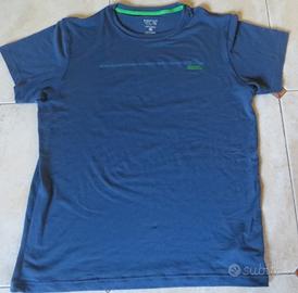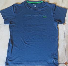 Maglietta tecnica marca Mountain Hard Wear colore blu melange con disegno sul dorso raffigurante delle montagne stilizzate. Tessuto morbidissimo taglia L che veste abbondante, perciò va bene anche come XL. Utilizzata poche volte. Ritiro a Modena città.