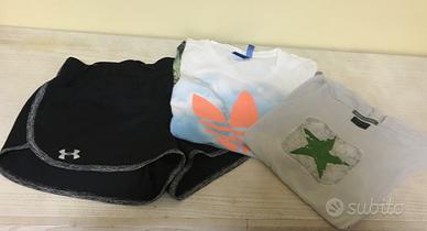Vendo per inutilizzo n. 3 maglie t-shirt: n. 1 Nike con tecnologia fitdry originale taglia M, n. 1 Adidas taglia M e n. 1 converse taglia M. Pantaloncini terminati. Utilizzati tutti un paio di volte infatti non presentano ne macchie ne segni di usura. Prezzo riferito per i 3 pezzi. Possibilità di spedizione in tutta Italia. Spese di spedizione incluse. Per qualsiasi altra informazione contattare tramite email.