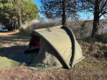 In buono stato la tenda dispone di doppia finestra anteriore e posteriore, inculude camera intera e con sovrattelo invernale e impermeabile e con tettino.