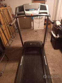 Il tapis roulant T5 è ideato per praticare running a bassa intensità, in casa. Semplice ed intuitivo, L’attrezzo dispone di pannello di controllo con display a led per controllo velocità, tempo, distanza e calorie. Si può usare sia in modalità manuale che automatica. Ha pedana mobile motorizzata