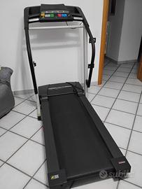Motore da tapis roulant Mach Drive da 2,50 CV progettato specificamente per prestazioni ottimali Selettore di velocità digitale da 0-16 KPH (0-10 MPH) per allenamenti completi e vari Inclinazione di potenza digitale da 0-10% per offrire all'utente il controllo totale Il sistema di ammortizzazione Protech consente di ridurre il rischio di infortuni e una sensazione di comfort ogni volta Area di corsa di 43 x 127 cm per un comfort aggiunto 7 programmi tra cui 6 programmi preimpostati progettati professionalmente, e 1 manuale consente all'utente di raggiungere i propri obiettivi. Il display LCD a 4 finestre con matrice di allenamento LCD integrata da 6 x 6 cm fornisce all'utente informazioni accuratefeedback su velocità, tempo, inclinazione, distanza, calorie/calorie dei grassi, giri completati e pulsazioni Il design pieghevole salvaspazio consente di ripiegare la macchina per riporla Dimensioni assemblata: 168 x 73 x 130 cm (LxWxH) Dimensioni piegata: 68 x 73 x 145 cm (LxWxH) Dimensioni imballata: 176 x 78 x 25 cm (LxWxH) Peso massimo: 100 kg Peso utente.