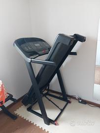 Vendo Tapis Roulant poiché mi sbarazzo della mia home gym. Preso nel '24 da decathlon funziona benissimo, sempre manutentato (spray apposito sotto il rullo. A parte abbino anche pesistica: manubri x 6 e pesi fino a 40 kg + struttura porta pesi. 300 € tapis roulant + 400 pesistica e struttura NO SPEDIZIONE