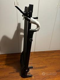 Il camminatore magnetico "Er. Rovera" studiato appositamente per chi ama lo sport, le camminate veloci o lente su diversi livelli di pendenza e la corsa. Il tappeto funziona a trazione magnetica, fluida e precisa, con regolazione della resistenza su 8 livelli. Allenamento completo e controllato grazie al computer che visualizza tutte le funzioni necessarie per monitorare tutti i valori dell’attività fisica. Il computer misura tutti i diversi parametri di allenamento come tempo, distanza, velocità, calorie, scansione e con funzione count-down: con supporto per smartphone o tablet. Telaio robusto che supporta un peso massimo atleta di 100 kg. Struttura in acciaio, pieghevole (sia in verticale che in orizzontale) e con ruote di trasporto per agevolare lo spostamento, infatti una volta terminato l’allenamento sarà possibile richiudere il tapis roulant e spostarlo grazie alle comode rotelle. Pre-assemblato e pronto all'uso. Tappeto corsa: 94,5x34 cm. Dimensioni aperto 118x121x63 cm, dimensioni chiuso 124x34x63 cm. Peso camminatore magnetico 21 kg.