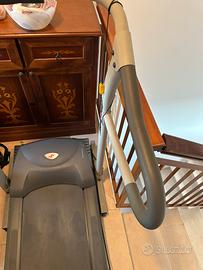 Tapis roulant elettrico Carnielli grigio con interrutore di sicurezza a clip , informazioni su distanza, calorie, tempo e velocità.
