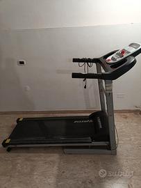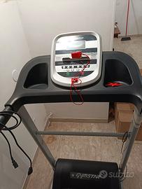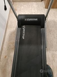 GYMSTAR prodotto da CARNIELLI Pari al nuovo. Con chiave di sicurezza, porta accessori, bicchiere, cellulare, tablet. Provvisto di pannello LCD con programmi, calorie ecc. Con altoparlanti e ingresso per MP3. Sensore cardiaco anche su manubrio. Possiede 12 programmi di allenamento e raggiunge una velocità massima di 14km/h ed è possibile inclinare il piano della corsa a due livelli. Tramite lo schermo è possibile tenere monitorato il tempo, la velocità, le caloria, la distanza e le pulsazioni. Si richiude in maniera facile e in totale sicurezza. Richiudibile, salvaspazio. Presente libretto istruzioni e lubrificanti
