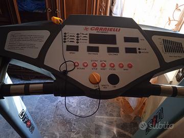 Tapis roulant Carnielli professionale confortevole con superficie di corsa ottima e funzioni di monitoraggio adeguate e complete con possibilita' di programmare percorsi, velocita' e pendenze .Ha un motore di 2.5 Hp e permette una corsa fino a 20 km/h. Ha il cavo di sicurezza e la possibilita' di monitoraggio cardio, con inclinazioni a 12 livelli per un allenamento casalingo professionale .Ha la necessita' di sostituire il tappeto ed ha un pulsante alle maniglie che non funziona bene ma la stessa funzione e' accessibile da display.Tranne queste due cose il tapis roulant e' perfetto.Il ritiro e' solo presso domicilio .Se realmente interessati potete scrivere per avere poi un aventuale contatto personale.